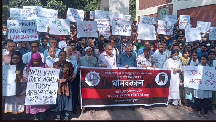 শিক্ষার্থীরা বলেন, বেইলি রোডের আগুনে অপার সম্ভাবনাময় দুই সহপাঠীকে হারিয়েছি। আমরা আর কাউকে এভাবে হারাতে চাই না।