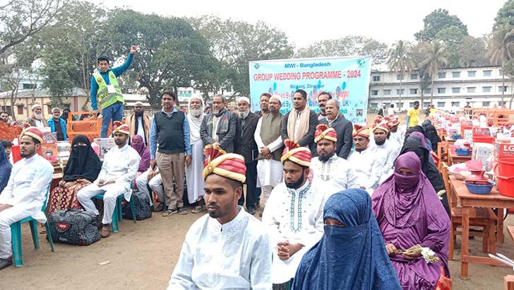 দিনাজপুরের বীরগঞ্জে ২০ জোড়া অসহায় তরুণ-তরুণীর যৌতুকবিহীন বিয়ে সম্পন্ন হয়েছে। অনুষ্ঠানে নবদম্পতিদের প্রয়োজনীয় আসবাবপত্র দেওয়া হয়েছে।