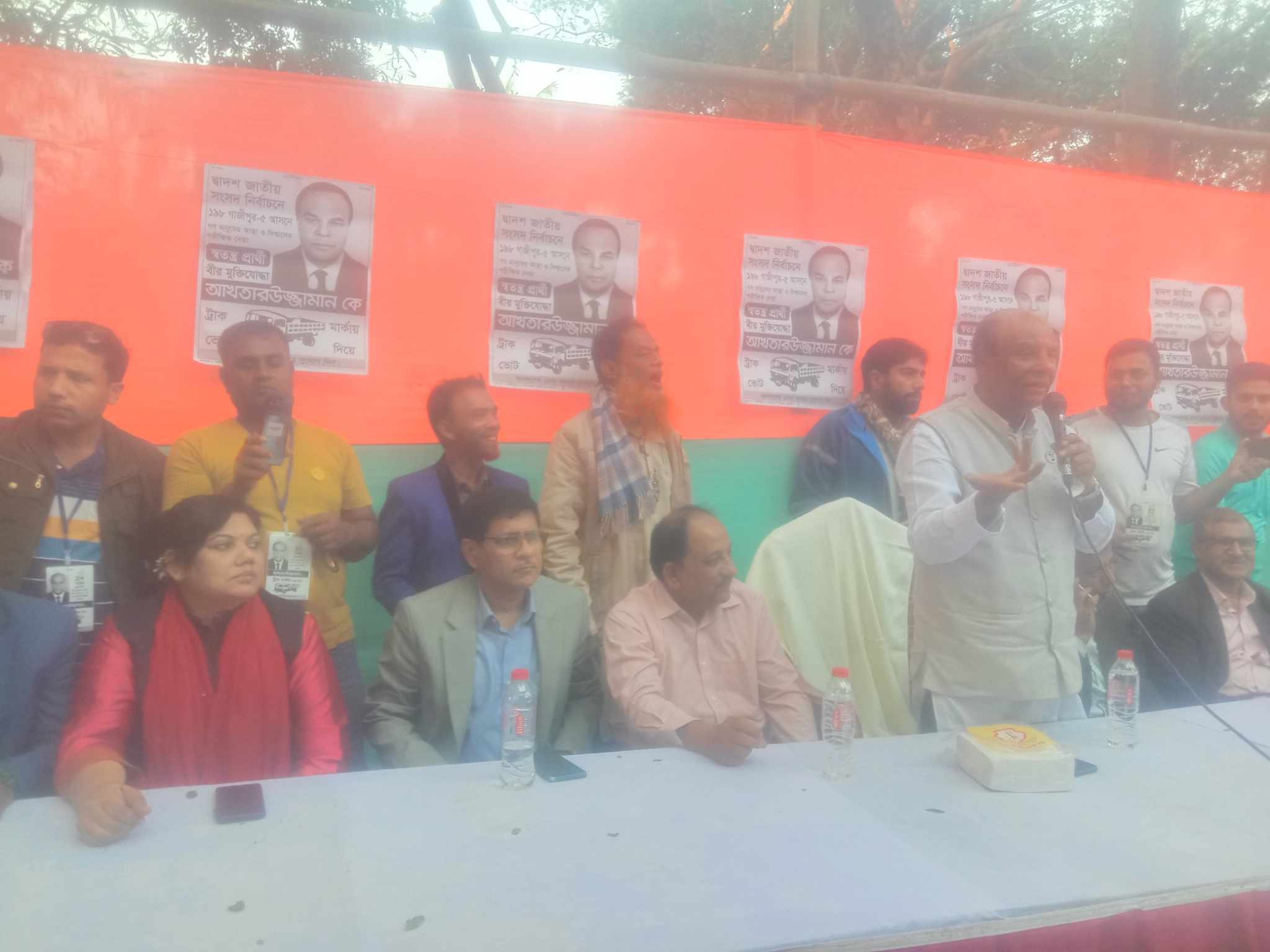 নির্বাচনী উঠান বৈঠকে প্রধান অতিথীর বক্তব্যে সংসদ সদস্য প্রার্থী বীর মুক্তিযুদ্ধা আখতারউজ্জামান বলেন, আগামী সাত তারিখ নির্বাচন হবে নিরপেক্ষ। একটি কুচক্রী মহল নির্বাচন কে বানচাল করার জন্য বিভিন্ন ধরনের অপপ্রচার চালাচ্ছে। আপনারা কেউ বিভ্রান্ত না হয়ে আমার প্রতিক ট্রাক মার্কায় ভোট দিয়ে আমাকে জয়যুক্ত করে আপনাদের সেবা করার সুজোগ দিবেন। আমি আপনাদের সেবক হয়ে থাকতে চাই। আপনারা সবাই আমার জন্য দোয়া করবেন। কালীগঞ্জ উপজেলা র মোক্তার পুর ইউনিয়ন এর লাইলী মার্কেট এর পশ্চিম পার্শ্বে মাঠে দুপুর ঘটিকার সময় উঠান বৈঠক অনুষ্ঠিত হয়েছে, ।