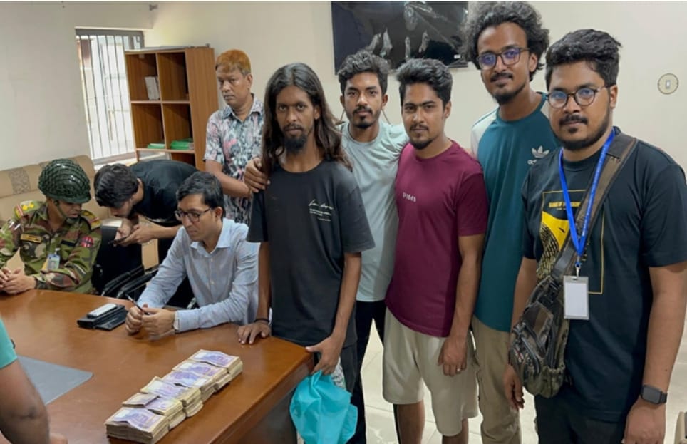 রাজশাহীতে ১৮ লাখ টাকা কুড়িয়ে পেয়েছেন শিক্ষার্থীরা। পরে ওই টাকা থানায় জমা দেওয়া হয়েছে। টাকার ব্যাগের সঙ্গে সোনালী রঙের একটি রহস্যজনক ধাতব বস্তু পাওয়া গেছে। এই ধাতব বস্তুটিতে ১৮টি ছিদ্র আছে। পুলিশ বলছে,এই টাকা কোথা থেকে এলো তা তদন্ত করে পরবর্তী ব্যবস্থা নেওয়া হবে।আজ রবিবার ভোর ৫টার দিকে নগরীর ভদ্রা এলাকার একটি গলির ভেতর ব্যাগভর্তি এই টাকা পড়ে ছিল। বেলা ১১টার দিকে কয়েকজন শিক্ষার্থী নগরীর বোয়ালিয়া থানায় গিয়ে টাকাগুলো জমা দেন। নির্বাহী ম্যাজিস্ট্রেট ও নগরীর বড়কুঠি ভূমি অফিসের সহকারী কমিশনার (ভূমি) শামসুল আলম এবং সেনাবাহিনীর ওয়ারেন্ট অফিসার ইকবাল হোসেনের উপস্থিতিতে বোয়ালিয়া থানার ভারপ্রাপ্ত কর্মকর্তা (ওসি) এসএম মাসুদ পারভেজ টাকা গুলো গ্রহণ করেন।থানায় টাকা জমা দিতে এসেছিলেন নাটোরের সিংড়ার রহমত ইকবাল ডিগ্রী কলেজের শিক্ষার্থী আকাশ আলীসহ কয়েকজন শিক্ষার্থী। তাদের বাড়ি ভদ্রা এলাকায়। আকাশ জানান,নিরাপত্তা নিশ্চিতের জন্য তারা রাতভর নগরীর ভদ্রা এলাকায় অবস্থান করেন। রাতের ডিউটি শেষে তারা ভোরে বাসায় ফিরছিলেন। তখন এলাকার একটি ছাত্রাবাসের সামনে একটি ব্যাগ পড়ে থাকতে দেখেন।ব্যাগটিতে লাথি দিলে তারা দেখেন ভেতরে কিছু আছে। তখন তারা ব্যাগটি খুলে দেখেন ভেতরে ১০০০ টাকার নোটের ১৮টি বান্ডেল। মোট টাকার পরিমাণ ১৮ লাখ। ব্যাগে তারা সোনালী রঙের একটি ধাতব বস্তুও পান। ধাতব বস্তুটিতে ১৮টি ছিদ্র আছে। এটি কোন সংকেত বলে তারা ধারণা করছেন। এইসবই তারা থানায় এনে ম্যাজিস্ট্রেটের উপস্থিতিতে জমা দিয়েছেন।বোয়ালিয়া থানার অফিসার ইনচার্জ ওসি এসএম মাসুদ পারভেজ জানান,আদালতের অনুমতি নিয়ে টাকাগুলো এখন রাষ্ট্রীয় কোষাগারে জমা দেওয়া হবে। পাশাপাশি এই টাকার মালিক কে,এগুলো অবৈধ টাকা কি না কিংবা কোন অপরাধী এ টাকা বহন করার সময় পড়ে গেছে কি না তা তদন্ত করা হবে। তদন্ত সাপেক্ষে এ ব্যাপারে পরবর্তী আইনগত পদক্ষেপ নেওয়া হবে।