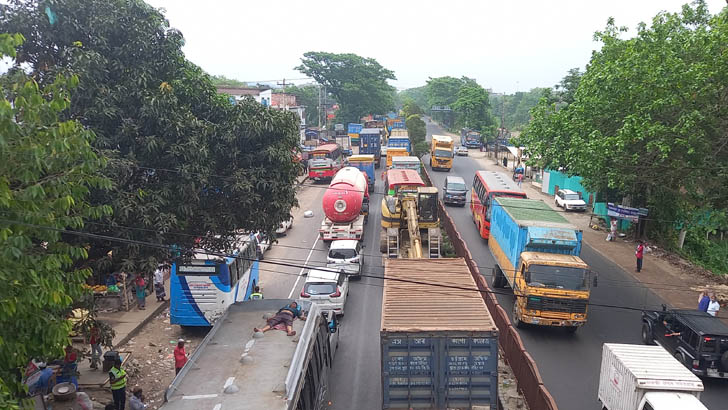 সরেজমিনে শুক্রবার সকাল ১০টায় ঢাকা-চট্টগ্রাম মহাসড়কের গজারিয়া অংশের বাউশিয়া পাখির মোড় এবং তেতৈতলা হাস পয়েন্ট এলাকায় গিয়ে দেখা যায়, ঢাকামুখী লেনে যানবাহন চলাচল স্বাভাবিক থাকলেও কুমিল্লামুখী লেনে যান চলাচল প্রায় বন্ধ। গজারিয়া অংশের ১৩ কিলোমিটার এলাকায় যানজট রয়েছে। এছাড়া কুমিল্লার দাউদকান্দি এবং নারায়ণগঞ্জের অংশেও যানজট রয়েছে।