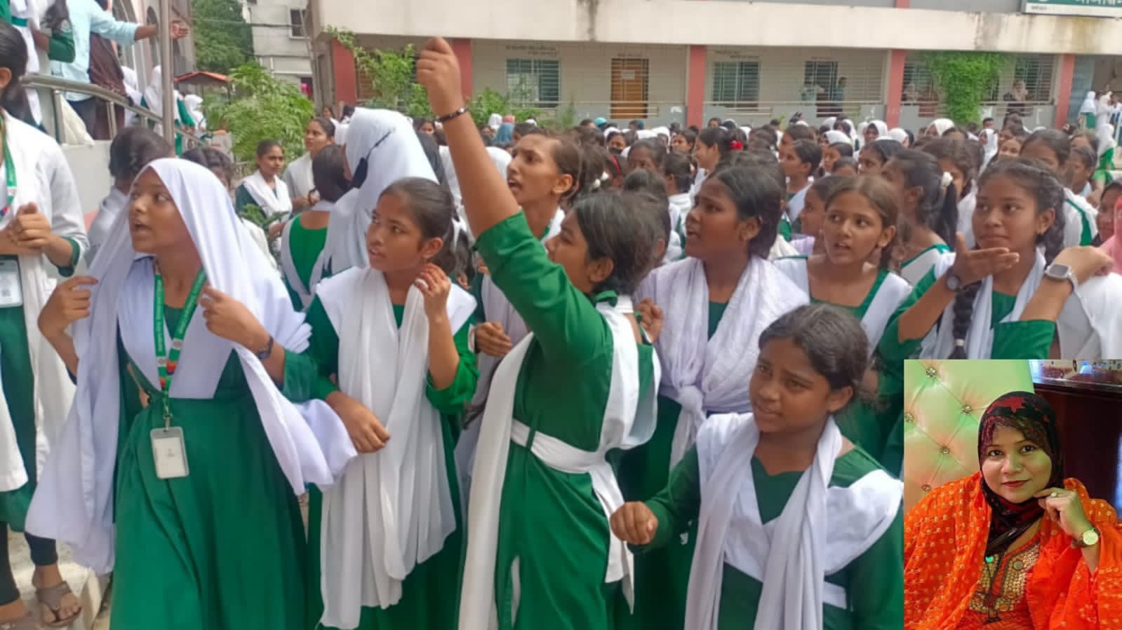 নবীগঞ্জ গার্লস স্কুল এন্ড কলেজের অধ্যক্ষ সায়মা খানমের বিরুদ্ধে স্বেচ্চাচারিতা, রাজনৈতিক প্রভাব খাটানোসহ নানা অনিয়ম দুর্নীতির অভিযোগ উঠেছে।এসব অনিয়ম ও দুর্নীতির অভিযোগে তার পদত্যাগের দাবিতে মঙ্গলবার (২০ আগস্ট) দুপুরে বিক্ষোভ সমাবেশ করেছে বিদ্যালয়ের শিক্ষার্থী ও অভিভাবকরা। এ সময় স্লোগানে স্লোগানে মুখরিত হয়ে উঠে বিদ্যালয় প্রাঙ্গণ।এর আগে বিদ্যালয়ের শিক্ষার্থীদের অভিযোগের ভিত্তিতে গতকাল মঙ্গলবার সকালে বিদ্যালয়ে যাওয়ার পথে বিভিন্ন অভিভাবকদের স্কুল গেটে দাঁড়িয়ে থাকতে দেখে কারণ জিজ্ঞাস করলে সাংবাদিকদের তারা জানান, আমরা খাবার নিয়ে এখানে দাঁড়িয়ে আছি কিন্তু বিদ্যালয় কর্তৃপক্ষ আমাদের ভিতরে প্রবেশ করতে দিচ্ছে না। তাই হতাশ হয়ে এখানে দাঁড়িয়ে আছি। আরেক অভিভাবক জানান, তার মেয়ে এই বিদ্যালয়ের ষষ্ঠ শ্রেণির শিক্ষার্থী। বেশ কয়েকদিন যাবতই তাকে বাসায় চাপ দিচ্ছে বিদ্যালয়ে একশত টাকা জমা দেওয়ার জন্য নাকি প্রধান শিক্ষক প্রত্যেক শিক্ষার্থীকে বলে দিয়েছে। এমনকি টাকা ছাড়া শ্রেণিতে প্রবেশ করতেও নিষেধ করে দিয়েছেন। কিন্তু কিসের টাকা সেই বিষয়ে শিক্ষার্থীরা কোন সদুত্তর দিতে পারেনি। তিনি আরও জানান, মাঝে মাঝেই তাদের কাছে একশত দুইশত করে টাকা চান। এমন অবস্থার কারণে অনেক পরিবারই সেই টাকা পরিশোধ করতে না পারার ভয়ে তাদের সন্তানকে বিদ্যালয়ে পাঠাতে পারেন না। পরে টাকা যোগার করে তারপর স্কুলে পাঠাতে হয়। টাকা ছাড়া স্কুলে প্রবেশ করলে বিভিন্ন কথা শুনতে হয় বলে ও জানান তিনি।অন্যদিকে গতকাল বিদ্যালয়ের সামনে গিয়ে দেখা যায়, সেখানে বৈষম্য বিরোধী ছাত্র আন্দোলনের বেশ কিছু শিক্ষার্থী গেটের সামনে অবস্থান করছে। কারণ জানতে চাইলে তারা জানান, বিদ্যালয়ের অধ্যক্ষ তাদেরকে বিদ্যালয় পরিদর্শন করতে আসতে বলেছেন। কিন্তু তারা স্কুলের গেটের সামনে গিয়ে পরিচয় দিয়ে প্রবেশ করতে চাইলে তাদেরকে ভিতরে প্রবেশ করতে দেওয়া হচ্ছে না। পরে নাসিক ২৩ ওয়ার্ড কাউন্সিলর আবুল কাওসার আশা আসলে গেট খুলে দেওয়ার পর বৈষম্যবিরোধী ছাত্র আন্দোলনের সদস্য, সাংবাদিকসহ অভিভাবকগণ ভিতরে প্রবেশ করার সুযোগ পান। এ সময় অধ্যক্ষের পদত্যাগের দাবিতে বিভিন্ন শিক্ষার্থীরা স্লোগান দিতে থাকেন। একই সময় প্রধান শিক্ষিকার পক্ষে এবং বিপক্ষে অবস্থান নেওয়া বিভিন্ন শিক্ষার্থীদের মধ্যে হৈ-হুল্লোর শুরু হয়। অনেক অভিভাবকই অভিযোগ করেন তাদের সন্তানদের কাছ থেকে অধ্যক্ষ’র বিরুদ্ধে কথা না বলার জন্য চাপ দেওয়া হয় এবং পক্ষে কথা না বললে স্কুল থেকে বের করে দেওয়া হবে বলে হুমকিও দেওয়া হয়।স্থানীয় অভিভাবকদের সাথে কথা বলে জানা যায়, এই বিদ্যালয়ের অধ্যক্ষ সায়মা খানমের বিরুদ্ধে বিভিন্ন আ