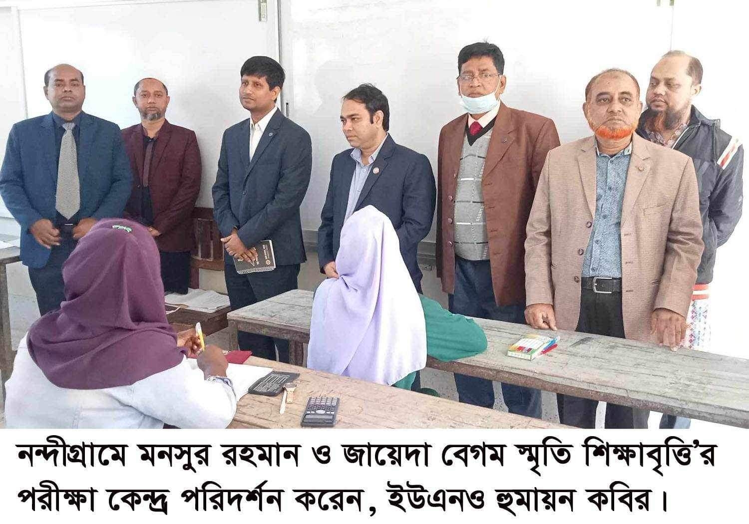 পরীক্ষা চলাকালীন সময়ে কেন্দ্র পরিদর্শন করেন নন্দীগ্রাম উপজেলা নির্বাহী অফিসার মোঃ হুমায়ুন কবির। ঐ সময় উপস্থিত ছিলেন মনসুর রহমান ও জায়েদা বেগম স্মৃতি শিক্ষাবৃত্তি পরীক্ষা কমিটির সভাপতি সহকারী অধ্যাপক ইলিয়াস হোসেন, টিএমএসএস মেডিকেল কলেজ ও হাসপাতালের ডেন্টাল ইউনিটের সহযোগী অধ্যাপক ও কমিটির সাধারণ সম্পাদক ডা. শাইখ আহম্মেদ রিংকু, গাবতলী সরকারী কলেজের সহকারী অধ্যাপক (ইসলামের ইতিহাস) মোঃ আমিনুল ইসলাম, সহকারী অধ্যাপক মোঃ আব্দুল খালেক,