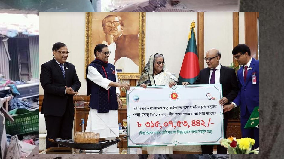 প্রধানমন্ত্রীর প্রেস সচিব ইহসানুল করিম আজ এক সংবাদ সম্মেলনে জানান, সড়ক পরিবহন ও সেতুমন্ত্রী ওবায়দুল কাদের পদ্মা সেতুর জন্য ঋণের ৫ম ও ৬ষ্ঠ কিস্তি হিসেবে ৩১৫,০৭,৫৩,৪৪২ টাকার চেক প্রধানমন্ত্রীর কাছে হস্তান্তর করেছেন।