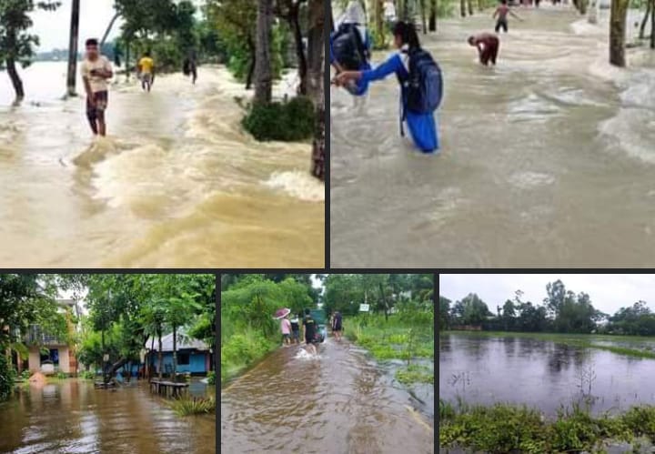 কয়েক দিনের ভারি ভর্ষণে তলিয়ে গেছে পুরো নোয়াখালী। ৯টি উপজেলার সবকটিতেই বসতঘর, গ্রামীণ সড়ক ও শিক্ষাপ্রতিষ্ঠান বন্যার পানিতে তলিয়ে গেছে। পানিবন্দি হয়ে পড়ছে লাখ লাখ মানুষ। এতে লোকজনের মধ্যে বন্যার আতঙ্ক দেখা দিয়েছে। খাল উদ্ধার ও পানি নিষ্কাশনে সেনাবাহিনীর সহযোগিতা চান স্থানীয়রা।জানা গেছে, টানা এক সপ্তাহের ভারি বর্ষণে জলাবদ্ধতা দেখা দিয়েছে পুরো নোয়াখালী জেলাজুড়ে। জেলার সদর, সেনবাগ, সোনাইমুড়ী, চাটখিল, বেগমগঞ্জ, কবিরহাট, কোম্পানীগঞ্জ, সুবর্ণচর উপজেলার বেশিরভাগ নিচু এলাকা প্লাবিত হয়েছে। এতে সীমাহীন ভোগান্তির মধ্যে পড়েছেন এসব উপজেলার বাসিন্দারা। বৃষ্টির পানিতে ডুবে গেছে আমন ধানের বীজতলা, শাক-সবজি। এছাড়া মাঠে পানি বেশি থাকায় অনেক এলাকার কৃষক খেতে আমন লাগাতে পারছেন না। জলাবদ্ধতায় আটকে আছে ২০ লাখ মানুষ। ডুবে গেছে সড়ক, বাসাবাড়িতেও ঢুকছে পানি। পানি নিষ্কাশন ব্যবস্থা ভালো না হওয়ায় দীর্ঘ সময়ের ব্যাপক জলাবদ্ধতায় চরম দুর্ভোগে পড়তে হচ্ছে নোয়াখালীবাসীর। সেনাবাহিনীর সহযোগিতায় দ্রুতই জলাবদ্ধতা নিরসনে কার্যকর পদক্ষেপ নেওয়ার দাবি জানান পানিবন্দি মানুষজন।আবহাওয়া অফিস বলছে, সোমবার ভোর ৬টা থেকে মঙ্গলবার সকাল ৬টা পর্যন্ত ১৭৪ মিলিমিটার বৃষ্টি হয়েছে। দিনেও বৃষ্টি অব্যাহত রয়েছে।জেলার সদর উপজেলার পশ্চিম চর উরিয়ার বাসিন্দা রেজাউল হক বলেন, টানা কয়েক দিনের ভারি বর্ষণে বাড়ির চারপাশে পানি ওঠে গেছে। ডুবে গেছে চলাচলের রাস্তা। গতরাতের টানা বৃষ্টিতে পানি এখন রান্না ঘরে ঢুকে গেছে। বাড়ির কেউই ঘর থেকে বের হতে পারছেন না। ফলে চরম দুর্ভোগ দেখা দিয়েছে।স্থানীয়রা জানায়, শহরের সব রাস্তা পানির নিচে তলিয়ে গেছে। মানুষের বাসার ভিতরে পানি থৈ থৈ করছে। এতে মানুষ বাসা থেকে বের হতে পারছেন না। রাস্তা ফাকা হয়ে গেছে। যার কারণে কোন যাত্রী পাচ্ছি না। বাড়িতেও পরিবারের লোকজন পানিবন্দি রয়েছে। কিভাবে বাঁচবো, কিছুই বুঝতে পারছি না।কোম্পানীগঞ্জ উপজেলার বাসিন্দা সাহাব উদ্দিন বলেন, রাস্তাঘাট ডুবে এখন মানুষের বসতঘরে পানি ঢুকে গেছে। মাছের ঘেরসহ সব ভেসে গেছে। এত পানি আগে দেখিনি। বৃষ্টি হলে পানি নেমে যায় কিন্তু এবার পানি নামছে না। পানিবাহিত অসুখ বেড়েই চলছে।কবিরহাট উপজেলার বাসিন্দা রুবেল বলেন, হাঁটু পানি দিয়ে আমাদের চলাফেরা করতে হচ্ছে। বিভিন্ন জায়গায় অবৈধভাবে বাধ দিয়ে মাছের ঘের করেছে প্রভাবশালীরা। খাল দখল করে অবৈধ স্থাপনা নির্মাণ করা হয়েছে। কোথা কোথা খাল দখল করে বাড়িঘরও নির্মাণ করা হয়েছে। যার কারণে পানি নামছে না। সেনাবাহিনী এসব অবৈধ স্থাপনা ভেঙ্গে দিয়ে খাল পরিষ্কার করে দিলে জলাবদ্ধতা থাকতো না।সেনবাগ উপজেলার বাবুপুর গ্রামের আ