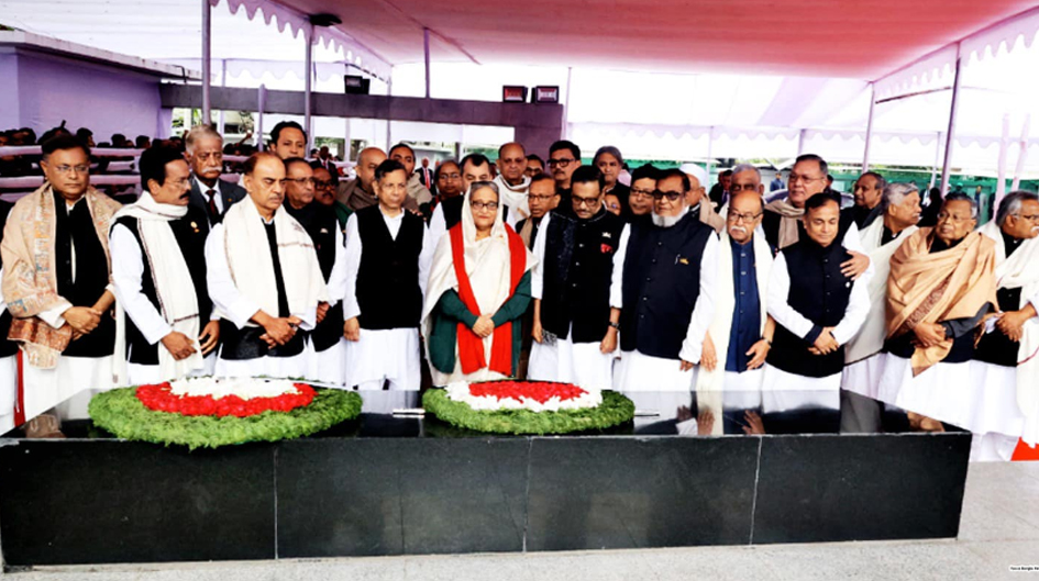 নিজস্ব প্রতিবেদক: প্রধানমন্ত্রী শেখ হাসিনার নেতৃত্বে ধানমন্ডিতে জাতির পিতা বঙ্গবন্ধু শেখ মুজিবুর রহমানের প্রতিকৃতিতে শ্রদ্ধা নিবেদন করেছে নতুন মন্ত্রিসভা।