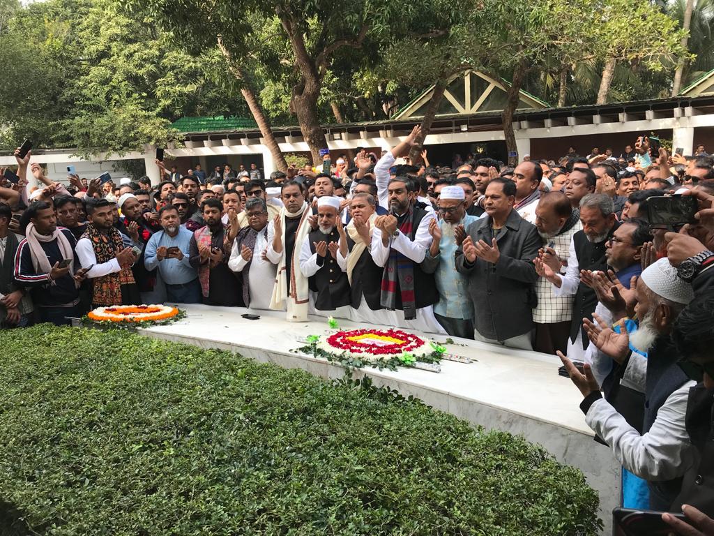 আজ মঙ্গলবার (১৬ জানুয়ারি) দুপুর ২টায় বঙ্গবন্ধুর সমাধি সৌধের বেদিতে ফুল দিয়ে শ্রদ্ধা জানান তিনি। এরপর কিছুক্ষণ নীরবে দাঁড়িয়ে থাকেন মো. খসরু চৌধুরী এমপি। পরে ’৭৫ এর ১৫ আগস্ট বঙ্গবন্ধু ও তার পরিবারের শহীদদের আত্মার মাগফিরাত কামনা করে দোয়া ও মোনাজাত করেন তিনি।