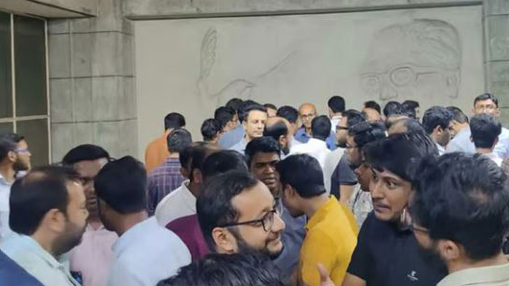 একপর্যায়ে শরফুদ্দিনের ব্যক্তিগত সহকারী ডা. রাসেল আহমেদকে চড়-থাপ্পড় দিয়ে উপাচার্যে কক্ষ থেকে বের করে দেওয়া হয়। বিএসএমএমইউর সুপার স্পেশালাইজড শাখা থেকেও একজনকে মারধর করে বের করে দেওয়ার অভিযোগ পাওয়া যায়।