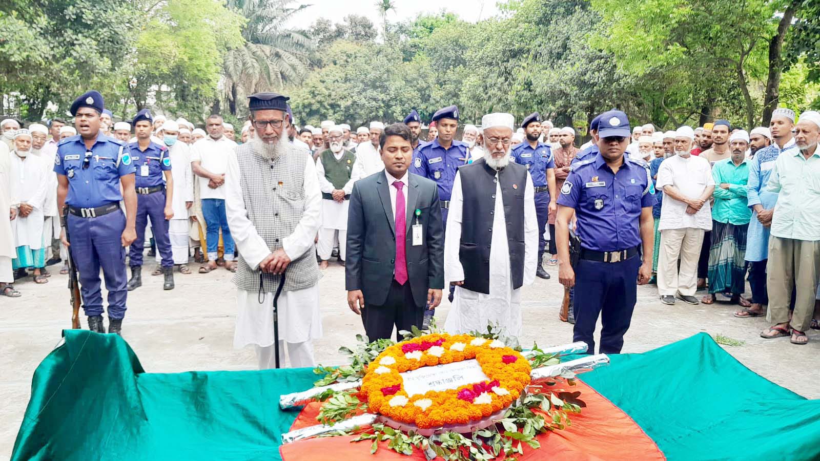 রবিবার সকাল ১১টায় খলাপাড়া দাখিল মাদ্রাসা প্রাঙ্গণে প্রথম জানাযা অনুষ্ঠিত হয়। দুপুর ২টায় সোম টিওরী কেন্দ্রীয় ঈদগাহ জামে মসজিদ মাঠে রাষ্ট্রীয় মর্যাদা প্রদান করেন উপজেলা নির্বাহী কর্মকর্তা মোঃ আজিজুর রহমান। পরে দ্বিতীয় জানাজা নামাজ শেষে টিওরী সামাজিক কবরস্থানে তাকে দাফন করা হয়।