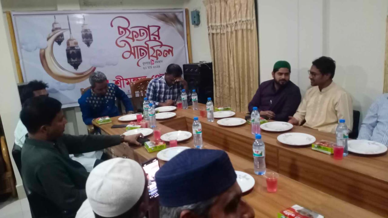শ্রীমঙ্গল প্রেসক্লাবের সভাপতি বিশ্বজ্যোতি চৌধুরী বুলেট এর সভাপতিত্বে ও ভারপ্রাপ্ত সাধারণ সম্পাদক ও সিন্দুরখাঁন ইউনিয়ন পরিষদ চেয়ারম্যান ইয়াছিন আরাফাত রবিন এর সঞ্চালনায় অনুষ্ঠিত ইফতার ও দোয়া মাহফিলে প্রধান অতিথি হিসেবে উপস্থিত ছিলেন শ্রীমঙ্গল উপজেলা নির্বাহী অফিসার মো: আবু তালেব। বিশেষ অতিথি হিসেবে উপস্থিত ছিলেন শ্রীমঙ্গল কমলগঞ্জ সার্কেলের সিনিয়র সহকারি পুলিশ সুপার আনিসুর রহমান, সহকারি কমিশনার (ভুমি) সন্দ্বীপ তালুকদার, শ্রীমঙ্গল থানার অফিসার ইনচার্জ বিনয় ভূষন রায়, জনস্বাস্থ্য প্রকৌশলী মো. সাইফুল ইসলাম। এছাড়াও উপস্থিত ছিলেন শ্রীমঙ্গল প্রেসক্লাবের সহ-সভাপতি দীপঙ্কর ভট্টাচার্য লিটন, আবুল ফজল মো: আব্দুল হাই ডন, সাবেক সহ সভাপতি ইসমাইল মাহমুদ, সাবেক সাধারণ সম্পাদক ইমাম হোসেন সোহেল, যুগ্ন সম্পাদক আবু জাফর সালাউদ্দিন, সহ সম্পাদক (সাহিত্য ও প্রকাশনা) বিশ্বজিৎ ভট্টাাচার্য বাপন, ক্রীড়া ও সাংস্কৃতিক সহ-সম্পাদক মামুন আহমেদ, দপ্তর সম্পাদক এম মুসলিম চৌধুরী, সাবেক যুগ্ন সম্পাদক এম এ রকিব, সাবেক কোষাধ্যক্ষ সৈয়দ ছায়েদ আহমেদ, কার্যকরী সদস্য শাকির আহমেদ, নূর মোহাম্মদ সাগর, সনেট দেব চৌধুরী, সুলতান মাহমুদ, প্রেসক্লাবের সিনিয়র সদস্য সৈয়দ আমিরুজ্জামান, ঝলক দত্ত, আমজাদ হোসেন বাচ্চু, মো: সাহাব উদ্দিন, মো: আলম, সামছুল ইসলাম শামীম , এম এ রব, মাওলানা হাফেজ জোবায়ের আহমেদ, গোলাম কিবরিয়া জুয়েল প্রমুখ।