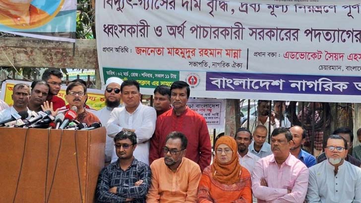 নাগরিক ঐক্যের সভাপতি মাহমুদুর রহমান মান্না বলেছেন, সরকার জুলুম করতে পারে, জিনিসের দাম কমাতে পারে না। একের পর এক জিনিসের দাম বাড়ছে, মানুষের জান বেরিয়ে যায়। ওনারা কোনো জিনিসের দাম কমাতে পারেননি।