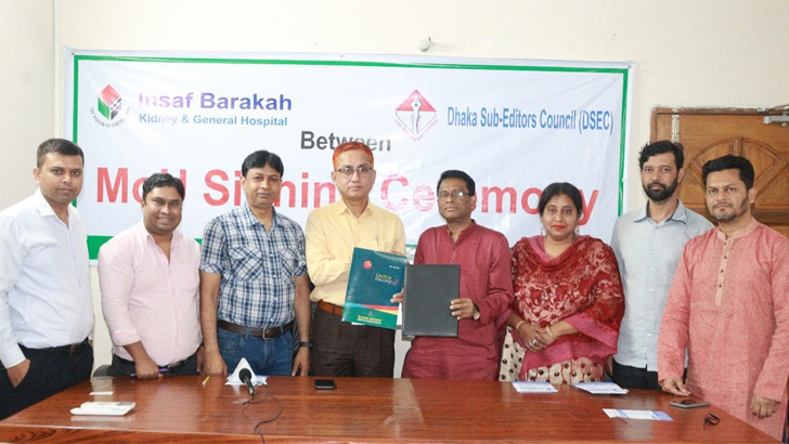 ঢাকা সাব-এডিটরস কাউন্সিল (ডিএসইসি) এবং ইনসাফ বারাকাহ কিডনি অ্যান্ড জেনারেল হাসপাতালের মধ্যে (স্বাস্থ্যসেবা) সমঝোতা চুক্তি স্বাক্ষরিত হয়েছে।