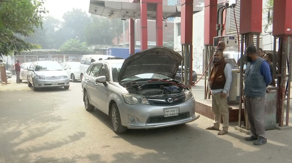 রাজধানীর সিএনজি পাম্পগুলোতে রোববারও গ্যাসের জন্য গাড়ি ও সিএনজি অটোরিকশার দীর্ঘ লাইন দেখা গেছে। প্রেসার কম থাকায় গাড়িতে কম গ্যাস ঢুকছে। ফলে বারবার দৌঁড়াতে হচ্ছে এক সিএনজি স্টেশন থেকে আরেক সিএনজি স্টেশনে।