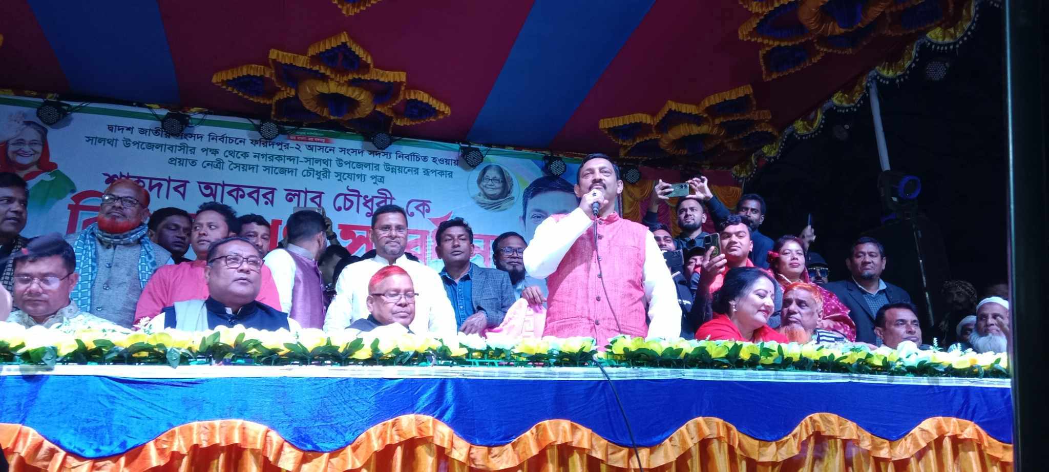 আকাশ সাহাঃ সালথা (ফরিদপুর) প্রতিনিধিঃ দ্বাদশ জাতীয় সংসদ নির্বাচনে ফরিদপুর-২ আসনে শাহদাব আকবর লাবু চৌধুরী পুনরায় সংসদ সদস্য নির্বাচিত হওয়ায় তাকে বিশাল গণসংবর্ধনা দিয়েছেন সালথা উপজেলাবাসী।
