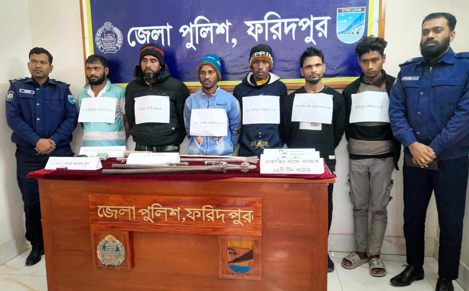 বৃহস্পতিবার (১৮ জানুয়ারি) দুপুরে ফরিদপুর পুলিশ সুপারের কার্যালয়ে এক সংবাদ সম্মেলনে পুলিশ সুপার মোহাম্মদ মোর্শেদ আলম ডাকাতির মালামাল সহ ডাকাতির অভিযোগে ওই ৬ জনকে গ্রেপ্তারের বিষয়টি সাংবাদিকদের নিশ্চিত করেছেন।