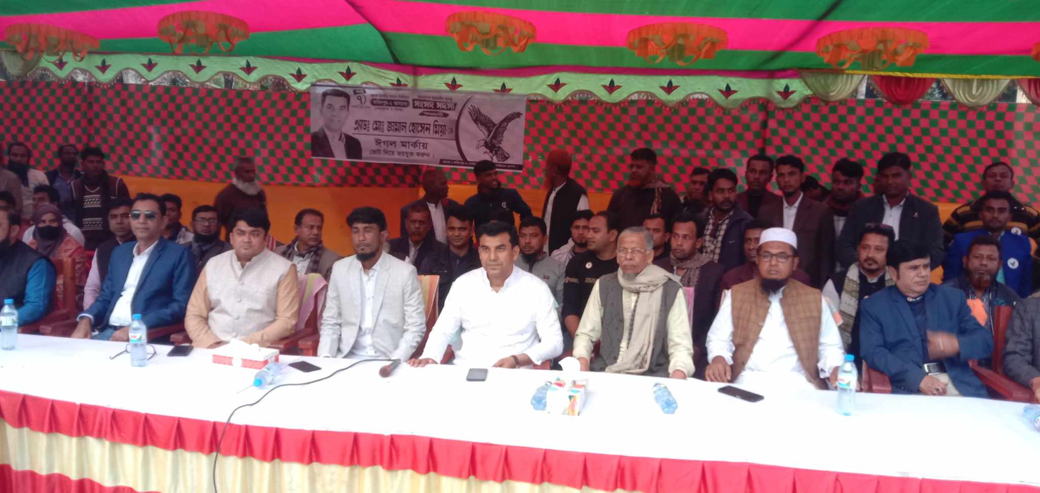 আপনারা কারো কথায় বিব্রত হবেন না, নির্বাচন সুষ্ঠু ও নিরপেক্ষ হবে। আপনারা সবাই নির্বিঘ্নে ভোট কেন্দ্রে গিয়ে ভোট দিয়ে জামাল হোসেন মিয়াকে জয়যুক্ত করবো। নির্বাচনী উঠান বৈঠকে প্রধান অতিথির বক্তব্যে সংসদ সদস্য প্রার্থী এ্যাডভোকেট জামাল হোসেন মিয়া বলেন, আগামী সাত তারিখ নির্বাচন হবে নিরপেক্ষ। একটি কুচক্রী মহল নির্বাচন কে বানচাল করার জন্য বিভিন্ন ধরনের অপপ্রচার চালাচ্ছে। আপনারা কেউ বিভ্রান্ত না হয়ে আমার প্রতিক ঈগল পাখি মার্কায় ভোট দিয়ে আমাকে জয়যুক্ত করে আপনাদের সেবা করার সুজোগ দিবেন। আমি আপনাদের সেবক হয়ে থাকতে চাই। আপনারা সবাই আমার জন্য দোয়া করবেন।