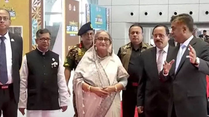 হযরত শাহজালাল আন্তর্জাতিক বিমানবন্দরের তৃতীয় টার্মিনাল উদ্বোধন করতে উদ্বোধনস্থলে পৌঁছেছেন প্রধানমন্ত্রী শেখ হাসিনা। শনিবার (৭ অক্টোবর) সকাল ১০টায় উদ্বোধনস্থলে আসেন তিনি। এরপর তিনি ঘুরে ঘরে টার্মিনাল পরিদশন করছেন। কিছুক্ষণের মধ্যেই