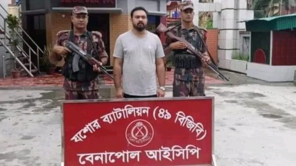 নাজমুল হাসান সিনিয়র রিপোর্টার যশোর : যশোরের বেনাপোল সিমান্ত দিয়ে ভারতে পালিয়ে যাওয়ার সময় বেনাপোল চেকপোস্ট থেকে যশোর জেলা ছাত্রলীগের সাধারণ সম্পাদক তানজীব নওশাদ পল্লবকে (৩৫) আটক করেছেন
