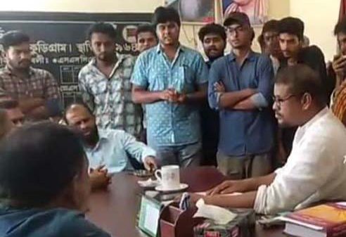 আনোয়ার সাঈদ তিতু, কুড়িগ্রাম জেলা প্রতিনিধি পাঁচ টাকার স্ট্যাম্পে স্বাক্ষর করে চেয়ারে বসলেন কুড়িগ্রামের রাজিবপুর মডেল সরকারি পাইলট উচ্চ বিদ্যালয়ের প্রধান শিক্ষক আজিম উদ্দিন। সোমবার বিকালে বৈষম্যবিরোধী