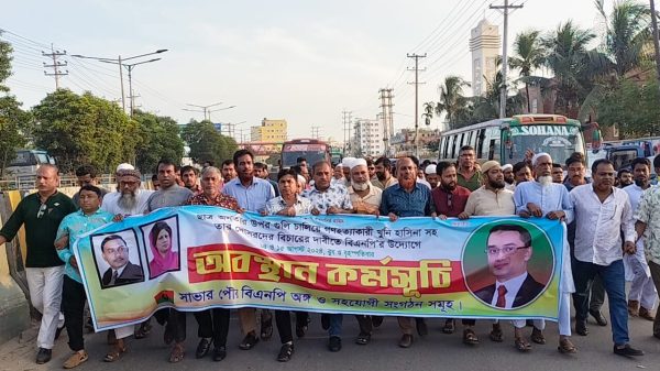 বিশেষ প্রতিনিধি : মো: মুজাহিদ খাঁন কাওছার ছাত্র জনতার উপর নির্বিচারে গুলি চালিয়ে গণহত্যাকারী খুনি হাসিনাসহ তার দোসরদের বিচারের দাবিতে সাভারে অবস্থান কর্মসূচি ও বিক্ষোভ মিছিল এবং