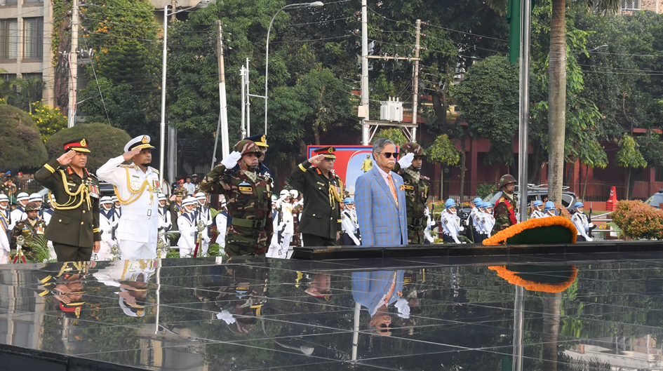 নিজস্ব প্রতিবেদক: সশস্ত্র বাহিনী দিবসে মহান মুক্তিযুদ্ধে শহীদ সশস্ত্র বাহিনীর সদস্যদের স্মৃতির প্রতি ঢাকা সেনানিবাসের শিখা অনির্বাণে ফুল দিয়ে শ্রদ্ধা জানিয়েছেন রাষ্ট্রপতি মোহাম্মদ সাহাবুদ্দিন ও প্রধানমন্ত্রী শেখ হাসিনা। শ্রদ্ধা নিবেদন