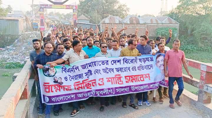 আকাশ সাহাঃ সালথা (ফরিদপুর)প্রতিনিধিঃ বিএনপি-জামাতের ডাকা হরতাল-অবরোধ ও নৈরাজ্যের প্রতিবাদে বিক্ষোভ মিছিল ও সমাবেশ করেছে ফরিদপুরের সালথা উপজেলা যুবলীগের কয়েকশ নেতাকর্মী। সোমবার (১৩ নভেম্বর) বিকেলে উপজেলা পরিষদের সামনে থেকে প্রথমে