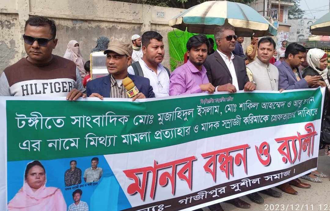 মোঃ মুক্তাদির হোসেন স্টাফ রিপোর্টার : গাজীপুরের টঙ্গীতে সাংবাদিকের নামে মিথ্যা মামলা প্রত্যাহার এবং মাদক সম্রাজ্ঞী কারিমাকে গ্রেফতারের দাবিতে মানব বন্ধন ও র্যালী অনুষ্ঠিত হয়। অদ্য ১১ ই ডিসেম্বর ২০২৩
