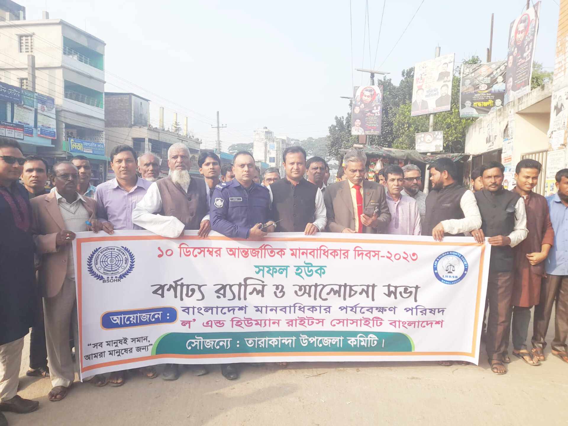 ময়মনসিংহ ফুলপুর প্রতিনিধি মোঃ কামরুল ইসলাম খান : ময়মনসিংহের তারাকান্দায় আন্তর্জাতিক মানবাধিকার দিবস উপলক্ষে বনার্ঢ্য র্যালীও আলোচনা সভা অনুষ্টিত হয়েছে। রবিবার (১০ডিসেম্বর) বিকালে বাংলাদেশ মানবাধিকার পর্যাবেক্ষন পরিষদ’ ল” এন্ড হিউম্যান