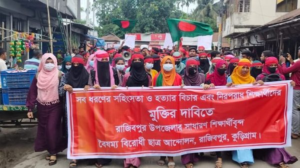 আনোয়ার সাঈদ তিতু, কুড়িগ্রাম জেলা প্রতিনিধি:- শনিবার, ০৩ আগষ্ট ২০২৪ ইং ১১:৫৯ পিএম. বৈষম্য বিরোধী ছাত্র আন্দোলনে সারাদেশে নেয় কুড়িগ্রামের রাজিবপুরেও সাধারণ শিক্ষার্থীদের আয়োজনে বিক্ষোভ মিছিল অনুষ্ঠিত হয়েছে। শনিবার (০৩