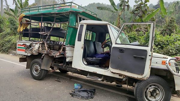 খাগড়াছড়ির মাটিরাঙ্গায় পর্যটকবাহী বাস ও পিকআপ মুখোমুখি সংঘর্ষে দুই নারী নিহত হয়েছেন। এ ঘটনায় গুরুতর আহত হয়েছেন আরো অন্তত ১০ জন। বুধবার সকাল সাড়ে ৯টার দিকে খাগড়াছড়ির প্রধান সড়কের মাটিরাঙ্গার