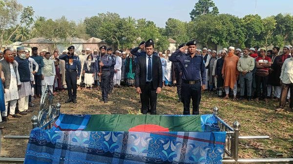আকাশ সাহাঃ সালথা (ফরিদপুর) প্রতিনিধিঃ রাষ্ট্রীয় মর্যাদায় সাবেক সেনা কর্মকর্তা বীর মুক্তিযোদ্ধা আবু বক্কর মোল্লার দাফন সম্পন্ন হয়েছে। শুক্রবার (১৬ ফেব্রুয়ারি) দুপুর ৩ টার দিকে ফরিদপুরের সালথা উপজেলার নবকাম পল্লী